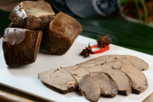 鍋中加入適量清水(能淹沒牛肝約五厘米為標(biāo)準(zhǔn));將八角20克,桂皮20克、花椒10克、小茴香10克、丁香10克、鮮姜50克、用紗布袋裝好,要寬松,不要太緊密,扎口,放入鍋中,在加入食用鹽250克,甜面醬200克,糖色約50克, 燒開后將牛肝放入鍋中煮制。 熟制鍋內(nèi)的水溫要保持在90°C左右,切勿水溫過高,否則牛肝會太硬,口感變差。小火慢煨保持湯面似開似不開狀態(tài)約2小時左右,把牛肝撈出,冷涼后即為成品。