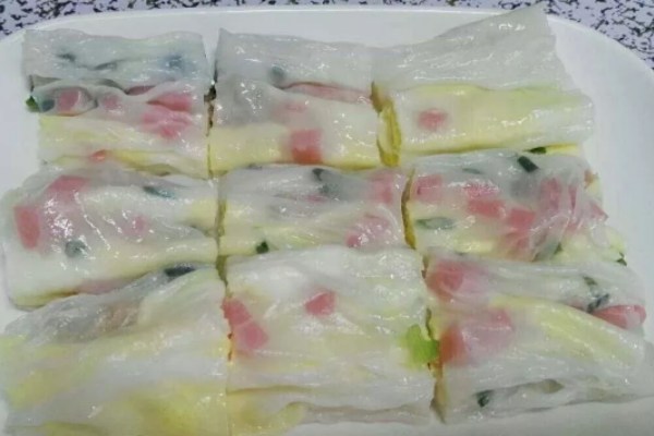 5、以上是基本腸粉的制作方法,花色隨著輔助原料的加入而改變名稱即可。