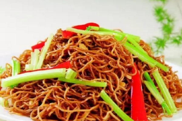 食材:面,豬肉,黃豆芽,蒜苔,油,鹽,冰糖,蔥,姜,八角,花椒,干辣椒,料酒,生抽, 老抽