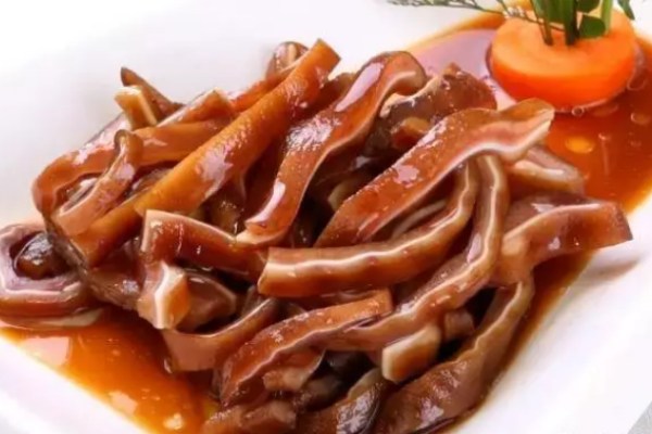 2)豬耳朵刮洗干凈冷水入鍋焯燙過涼。