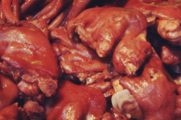 2、鹵肉原料碼味時,要加%0.05的硝鹽(一定要控制用量,不能超!),腌碼時間一定要夠3小時,汆水必須將原料煮熟斷生,鹵制時間控制在要求時間之內,雞爪、雞翅、鴨掌等小型原料鹵制時間15分鐘之內,整雞、牛肉等控制在2小時之內,鹵菜時必須加蓋保持桶內鹵汁微微開,同時,鹵菜鹵好出鍋后必須用油刷刷1:1的香油和熟菜油,刷油的目的是阻滯空氣與食物的碘化反應速度,同時刷油后加封保鮮膜存放銷售。