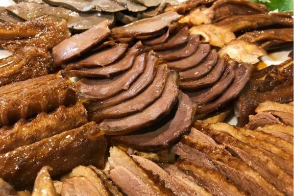 (1)原料加工:把鹵菜原料(各種葷素食品)肉類洗凈焯水去腥、切塊(一般體積較大的整塊肉類切成重約200克左右塊狀),注意心肝、肚腸、雞鴨肫、翅膀、蹄掌、鴨鵝頭頸等小件食品無須切塊。而焯水時間應視原料質地決定,鮮味較好、異味輕的原料焯水以能除去血腥味,在撈出即可入鹵鍋為度。尤其牛、羊肉、肚、腸等異味重的原,焯至熟后(泡煮15分鐘)再撈入鹵鍋。而素菜(豆制品、豆果類)洗凈即可。