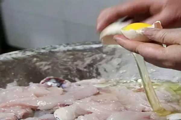調制時蛋清和濕淀粉用量要少,以主料表面出現一層薄漿為宜。