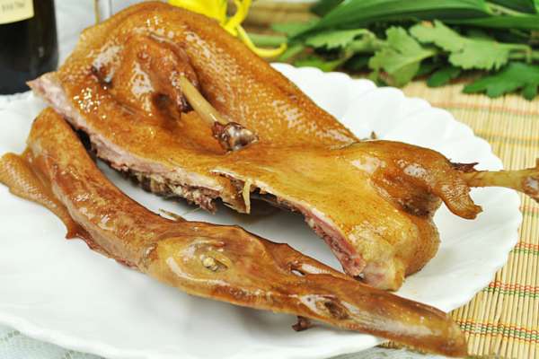 ①將活鴨宰殺, 放血,用開水燙一下,褪凈毛,絨毛要用小火燎干凈。
