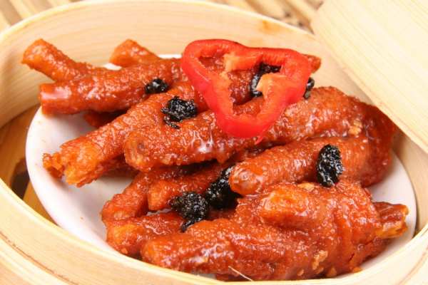 (5)將炸好的鳳爪放入潮州鹵水中浸鹵30分鐘,撈起即可上碟。