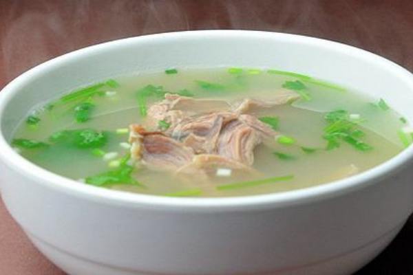 牛肉湯是一道漢族傳統的美食,主料有牛大骨、牛肉。牛肉湯選料講究,取江淮一帶的黃牛為原料,用牛骨頭熬湯,煮牛肉時必須浸泡,除去血污,內臟清洗干凈,方可下鍋同煮,還用自制的牛油,將炸制好淮椒(紅干椒)做成紅油。